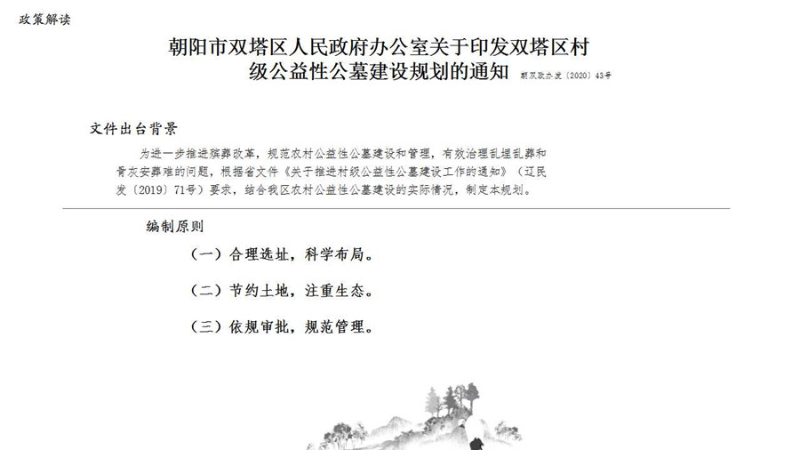 (图解版)(朝双政办发〔2020〕43号 )《朝阳市双塔区人民政府办公室关于印发双塔区村级公益性公墓建设规划的通知》文件解读