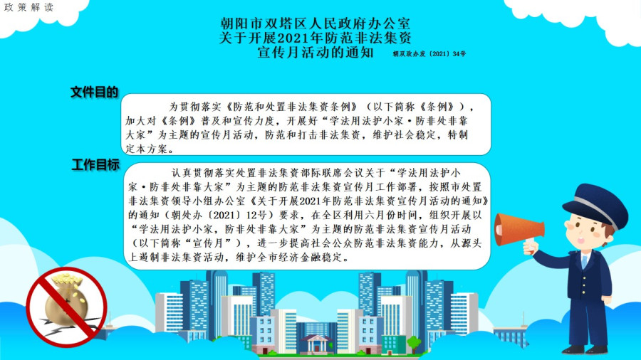 (图解版)(朝双政办发〔2021〕34号) 《朝阳市双塔区人民政府办公室关于开展2021年防范非法集资宣传月活动的通知》文件解读