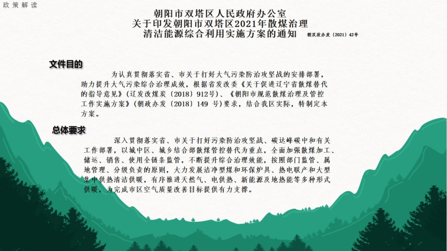 (图解版)(朝双政办发〔2021〕42号) 《朝阳市双塔区人民政府办公室关于印发朝阳市双塔区2021年散煤治理清洁能源综合利用实施方案的通知》文件解读